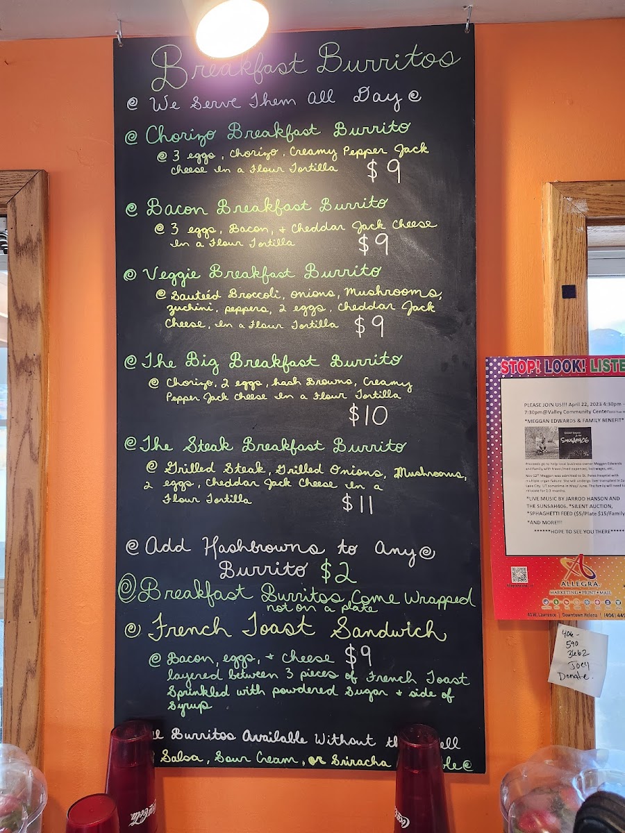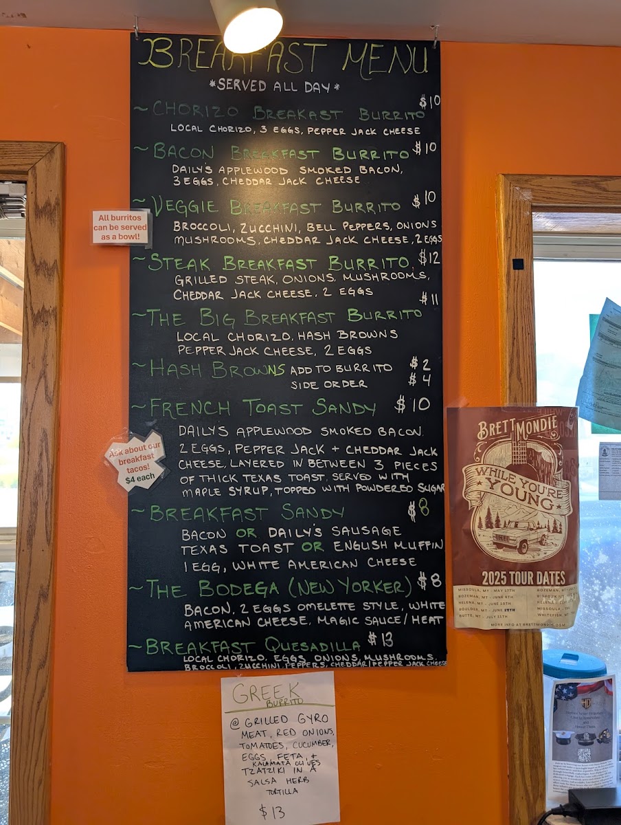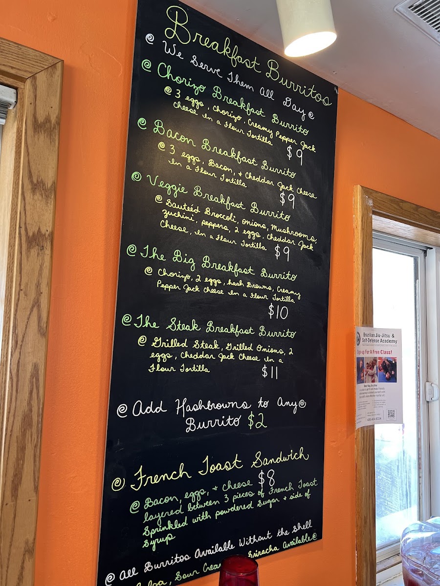 Guests can find flavorful wraps and burritos packed with fresh ingredients and bold flavors, such as the Bacon Breakfast Burrito or the Veggie Breakfast Burrito with salsa, perfect for a cozy yet filling breakfast. When lunchtime rolls around, dishes like the Cheesesteak Sandwich or the Carne Asada Burrito provide a mix of savory, well-seasoned bites that match the easygoing, welcoming vibe of the restaurant.